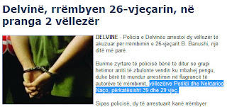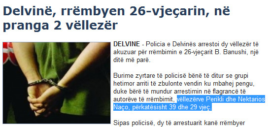 Το περίεργο της ιστορίας είναι είναι το είδος της αναφοράς που κάνουν τα Αλβανικά μέσα στους δράστες, προσπαθώντας να φωτογραφίσουν την Ελληνική τους καταγωγή (αν υπάρχει), στον 29χρονο μάλιστα, τοποθετούν και το τελικό Ελληνικό ς(σίγμα - NektarioS), το οποίο δεν "στέκει" γραμματικά στην Αλβανική γλώσσα. Δείτε την παρακάτω εικόνα: